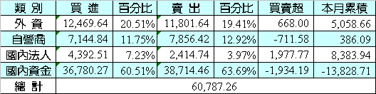 12/6 泰股法人及外資進出統計表